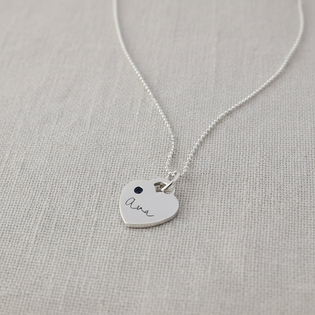 These pendants are available with any birthstone (black stones also available), as well as personalization on front and/or back. Each Cubic Zirconia crystal is set into the silver, with a hole through the back to let light shine through the stone.