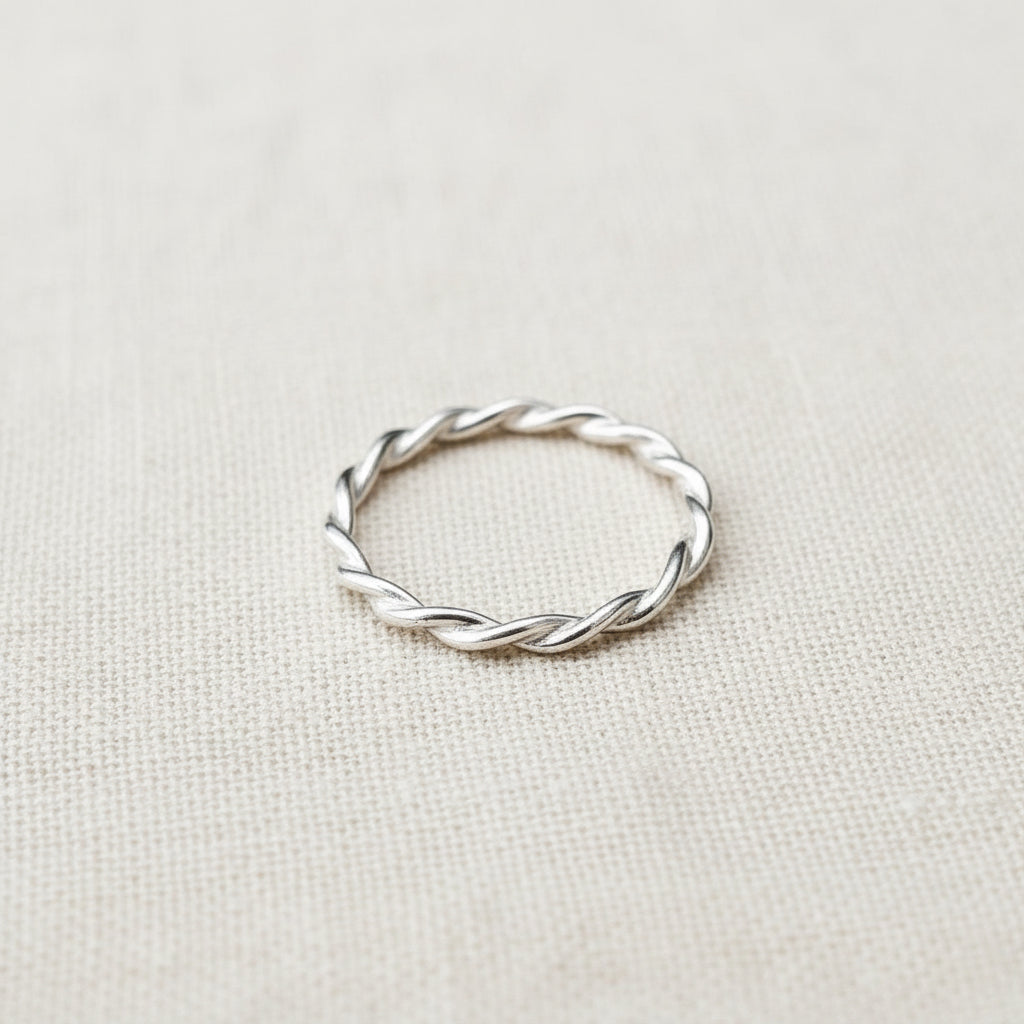 Each band is handmade to order, using sterling silver. The silver is twisted by hand, and forged into a ring.