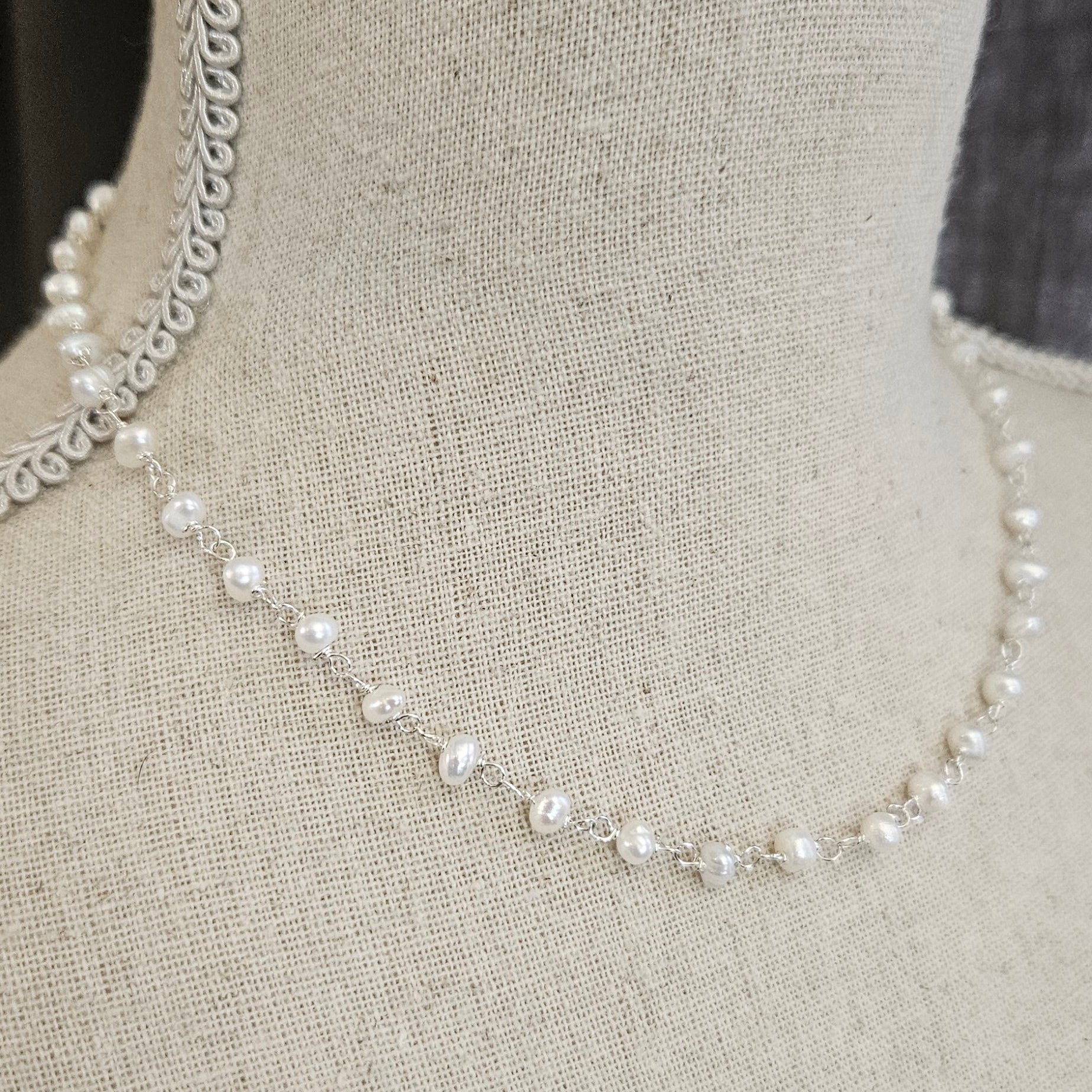 A strand of hand-linked freshwater pearls, each one chosen for its soft glow and gentle irregularity - the kind of tiny variations that make real pearls feel alive. This necklace is subtle, lightweight, and easy to wear, but it has that quiet presence pearls are known for: calm, understated, and timeless without trying.