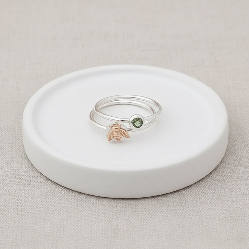 Indulge in the exquisite craftsmanship of this Honeycomb Bee Ring, meticulously handcrafted with love and care from the finest sterling silver and luxurious 14k gold. Versatile and stackable, this ring is a must-have addition to any jewelry collection.